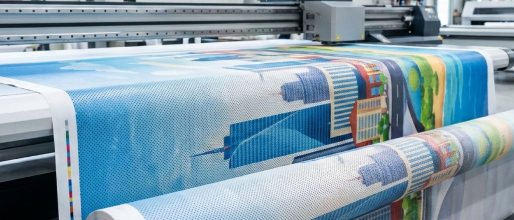 Печать выполняется на широкоформатных принтерах экосольвентными или UV-чернилами. Экосольвент даёт насыщенные цвета и устойчивость к выгоранию. UV-краска формирует прочный слой, который не стирается при контакте с поверхностями.